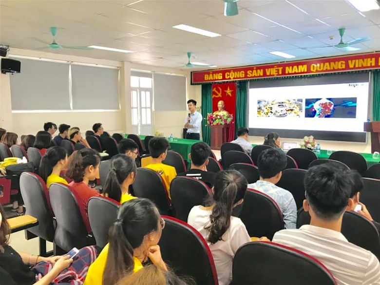 Diễn giả Trần Trung Hiếu nói chuyện với các bạn sinh viên về chủ đề "Sinh viên và cơ hội việc làm trong thời kỳ 4.0"